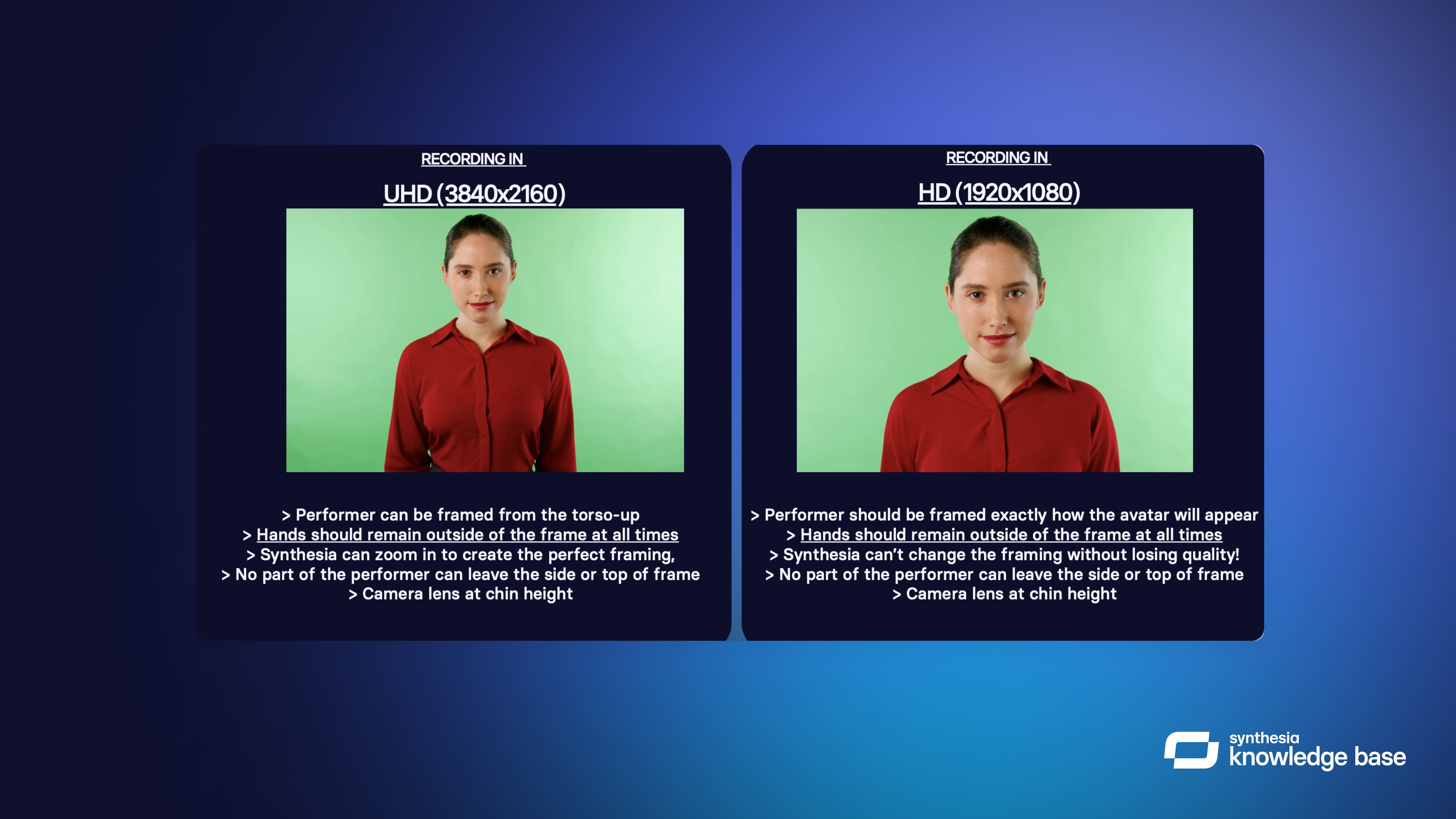 If you are only able to film in HD 1920×1080, then we ask that you frame the digital spokesperson in the exact framing that you want the digital spokesperson to be in, as we are NOT able to adjust framing during the digital spokesperson creation process.